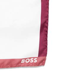 silk handkerchief Highlights - White/tuscan red - Silk - Satin weave - Contrasting border - Finished edge - Logo print to the side - Square shape Made in Italy Composition Silk 100% SIZE & FIT Measurement LENGTH 12.99 in(33 cm) WIDTH 12.59 in(32 cm) Washing instructions Dry Clean Only