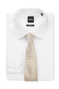 DETAILS Carrying a fresh dot jacquard that'll go with any formal look, this BOSS Menswear tie has been hand made in Italy. Finest Italian-crafted silk. Measurements: 150 x 7.5cms. Length: 150,0 cm (59.1 inches) Width: 7,5 cm (3.0 inches) L-TIE CM 7,5 - 223 - 50551347 QUALITY & CARE INSTRUCTIONS Iron Low Heat Do Not Bleach Do Not Wash Material: 100% Silk Do Not Tumble Dry Reduced Dry Clean