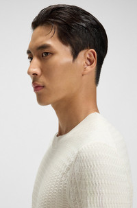 SIZE AND FIT The model wears a size M and is 6'1" tall with a, 36" chest, 29" waist and 36" hips. DETAILS L-Intenso - 50543228 Crafted in soft silk, this BOSS Menswear sweater has a tonal Prince of Wales check knitted in. Cut to a straight fit for easy layering. Regular fit Neckline: Crew neck Long sleeves Standard length QUALITY & CARE INSTRUCTIONS Cold, gentle machine wash; reduced spin speed. Do Not Tumble Dry Quality: 100% Silk Do Not Bleach Iron Medium Heat Dry Clean Only