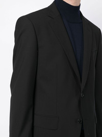 single-breasted blazer black virgin wool blend notched lapels front button fastening long sleeves buttoned cuffs slit pocket at the chest two front flap pockets English rear vents Made in Italy Composition Virgin Wool 95%, Elastane 5% SIZE & FIT Model measurements Height 6 ft 3 in(1.9 m) Bust/Chest 34.64 in(88 cm) Hips 36.61 in(93 cm) Waist 27.55 in(70 cm)