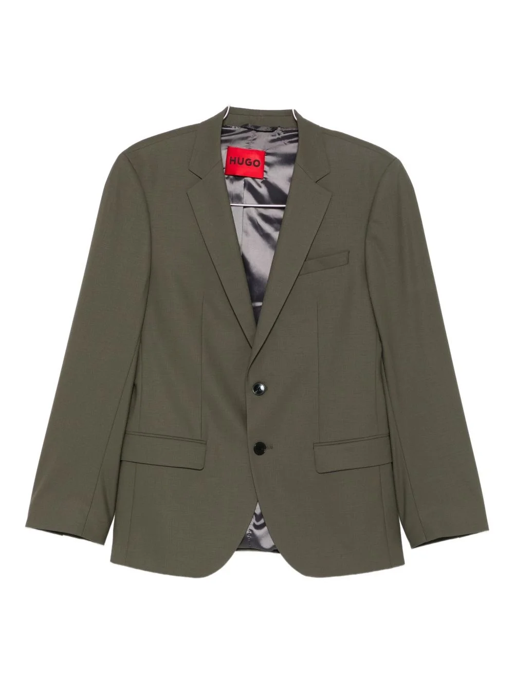 single-breasted suit Highlights - Olive green - Two-button fastening - Notched lapel - Flap pockets Imported Composition Lining: Polyester 100% Outer: Wool 51%, Polyester 44%, Elastane 5% SIZE & FIT Model measurements Height 6 ft 2 in(1.87 m) Bust/Chest 37.79 in(96 cm) Hips 37.79 in(96 cm) Waist 30.31 in(77 cm) Washing instructions Dry Clean Only
