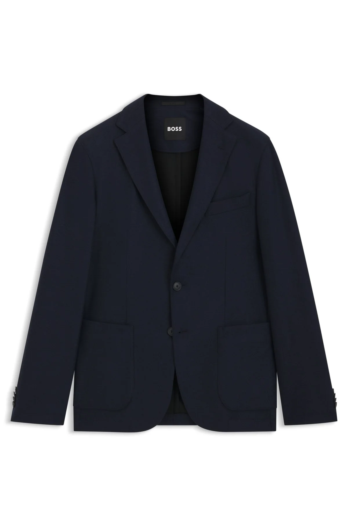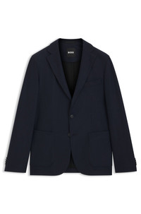 SIZE AND FIT The model wears a size 40R and is 6'1" tall with a, 37" chest, 29" waist and 35" hips. DETAILS P-Hanry-J-WG-252 - 50551528 Blended with wool, this machine-washable BOSS Menswear suit jacket is crafted in cozy brushed flannel with stretch for comfort. Cut to a modern slim fit. Unlined QUALITY & CARE INSTRUCTIONS Cold, gentle machine wash; reduced spin speed. Do Not Tumble Dry Quality: 25% Viscose, 32% Polyester, 25% Polyamid, 14% Wool, 4% Elastane, Lining: 60% Polyamid, 40% Polyester, Sleeve lining: 95% Polyester, 5% Elastane Reduced Dry Clean Iron Low Heat Do Not Bleach