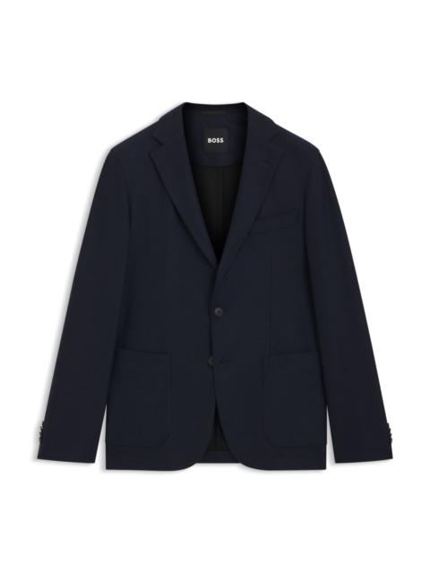 SIZE AND FIT The model wears a size 38R and is 6'1" tall with a, 32" chest, 28" waist and 34" hips. DETAILS Blended with wool, this machine-washable BOSS Menswear suit jacket is crafted in cozy brushed flannel with stretch for comfort. Cut to a modern slim fit. Unlined P-Hanry-J-WG-252 - 50551528 QUALITY & CARE INSTRUCTIONS Do Not Tumble Dry Quality: 25% Viscose, 32% Polyester, 25% Polyamid, 14% Wool, 4% Elastane, Lining: 60% Polyamid, 40% Polyester, Sleeve lining: 95% Polyester, 5% Elastane Iron Low Heat Do Not Bleach Reduced Dry Clean Cold, gentle machine wash; reduced spin speed.