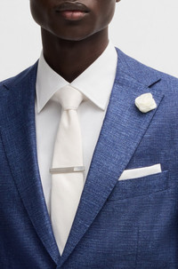 SIZE AND FIT The model wears a size 38R and is 6'1" tall with a, 33" chest, 31" waist and 33" hips. DETAILS C-Hanry-252 - 50540724 With a clean fit and soft shoulder, this BOSS Menswear suit jacket is a versatile investment. Blended with linen and stretch for summery comfort. Slim fit Notched lapels Number of buttons: 2 Patch chest pockets Pockets top: Welt pockets Kissing buttons on the cuff Partially lined QUALITY & CARE INSTRUCTIONS Iron Low Heat Do Not Wash Quality: 57% Viscose, 39% Linen, 2% Polyamid, 2% Elastane, Lining: 100% Viscose, Sleeve lining: 100% Viscose, pocketing: 100% Cotton Reduced Dry Clean Do Not Bleach Do Not Tumble Dry