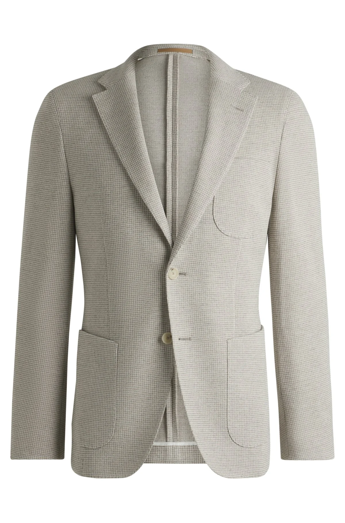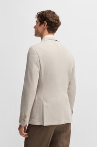 SIZE AND FIT The model wears a size 38R and is 6'2" tall with a, 37" chest, 31" waist and 37" hips. DETAILS L-Heston-J-3PP-242 - 50533720 Create a variety of formal looks with this modern blazer by BOSS Menswear. Tailored to a slim fit for a clean profile, this design is crafted in patterned fabric made from virgin wool, cotton and luxuriously soft cashmere. It features a chest pocket and button hole for versatility. Slim fit Partially lined QUALITY & CARE INSTRUCTIONS Do Not Wash Do Not Tumble Dry Reduced Dry Clean Iron Medium Heat Do Not Bleach Quality: 46% Virgin wool, 34% Cotton, 20% Cashmere, Lining: 100% Cupro