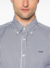 logo-embroidered shirt Highlights - Black/white - Cotton blend - Embroidered logo at the chest - Front button fastening - Vertical stripe pattern - Straight-point collar - Long sleeves - Buttoned cuffs - Mini logo tag - Curved hem Imported Composition Cotton 72%, Polyamide 24%, Elastane 4% SIZE & FIT Model measurements Height 6 ft 2 in(1.87 m) Bust/Chest 37.79 in(96 cm) Hips 37.79 in(96 cm) Waist 30.31 in(77 cm) FittingInformation Designed for a slim fit, offering a comfortable fit that sits just away from the body Made from a midweight non-stretch fabric Washing instructions Machine Wash