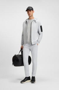 SIZE AND FIT The model wears a size M and is 6'2" tall with a, 38" chest, 31" waist and 38" hips. DETAILS T_Commuter TSR - 50541372 Featuring a decorative reflective logo, these slim BOSS Menswear chinos are a casual essential. Stretch seersucker with athleisure inseam for comfort. Integrated chest pocket Slim fit Button and zip closure Pockets bottom front: French pocket Pockets bottom back: Back zip pocket QUALITY & CARE INSTRUCTIONS Machine Wash Cold Gentle Do Not Dry Clean Do Not Tumble Dry Quality: 85% Polyamid, 15% Elastane Do Not Bleach Iron Low Heat