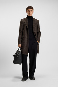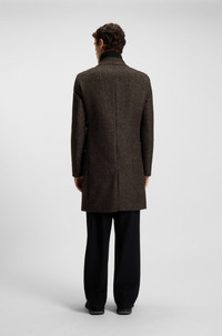 DETAILS H-Hyde-J-Bib-Pad-254 - 50551612 Blended with soft wool, this patterned BOSS Menswear coat offers a versatile trans-seasonal option. Slightly padded with stretch for comfort. Detachable zip-up inner. Slim fit Stand collar Notched lapels Fastening top: Zip and button closure Number of buttons: 3 Pockets top: Flap pockets Back vent Fully lined QUALITY & CARE INSTRUCTIONS Do Not Tumble Dry Quality: 45% Polyester, 40% Polyacrylic, 15% Virgin wool, Lining: 100% Polyamid, Knitwear: 50% Wool, 50% Polyacrylic, Body Lining: 100% Viscose, sleeve wadding: 100% Polyester (45% recycled), body wadding: 100% Polyester Reduced Dry Clean Iron Low Heat Do Not Wash Do Not Bleach