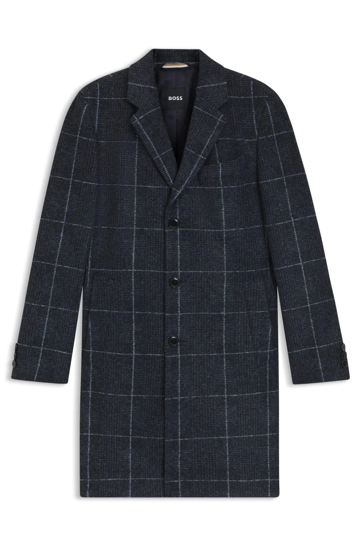 SIZE AND FIT The model wears a size 38R and is 6'1" tall with a, 36" chest, 29" waist and 36" hips. DETAILS H-Hyde-J-254 - 50551092 Blended with wool and offering two-way stretch, this slim-cut BOSS Menswear coat is a classic way to layer. Patterned with a versatile check. Slim fit Notched lapels Number of buttons: 3 Welt chest pockets Pockets top: Side-entry pockets Button cuffs Back vent Fully lined QUALITY & CARE INSTRUCTIONS Do Not Tumble Dry Reduced Dry Clean Quality: 45% Polyester, 40% Polyacrylic, 15% Virgin wool, Sleeve lining: 100% Viscose, Body Lining: 100% Viscose Iron Low Heat Do Not Wash Do Not Bleach