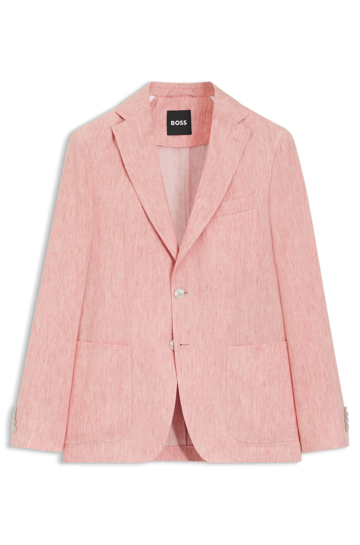 DETAILS With an elegant pattern, this BOSS Menswear blazer is cut to a modern slim fit. Crafted in a summery linen blend. Soft shoulder construction. Slim fit Fastening top: Button closure Number of buttons: 2 Welt chest pockets Pockets top: Patch pockets Inside patch pockets Button cuffs Unlined C-Hanry-262 - 50561906 QUALITY & CARE INSTRUCTIONS Reduced Dry Clean Do Not Bleach Do Not Tumble Dry Iron Medium Heat Do Not Wash Material: 54% Linen, 46% Lyocell, Lining: 100% Viscose, Sleeve lining: 100% Viscose, pocketing: 100% Cotton