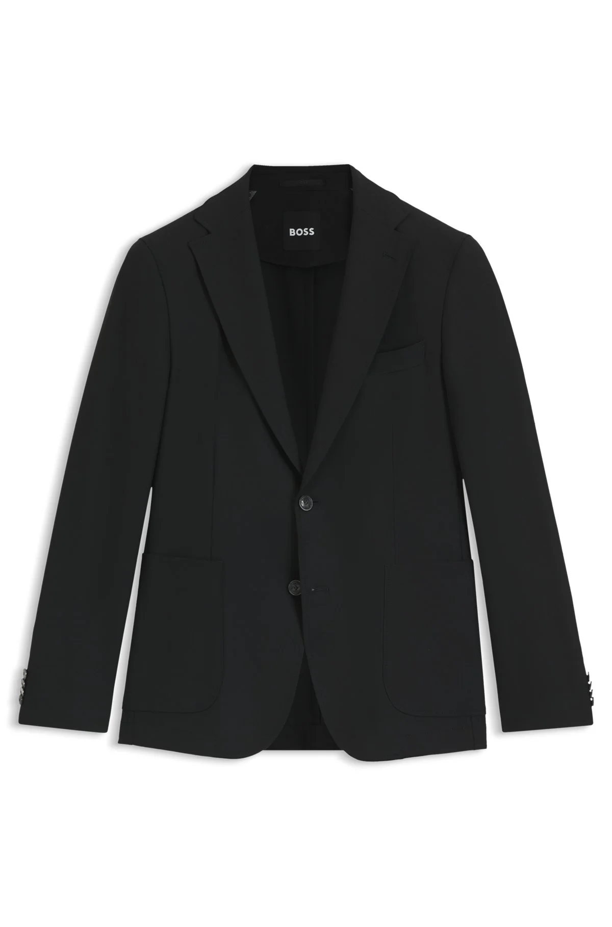 SIZE AND FIT The model wears a size 38R and is 6'1" tall with a, 32" chest, 28" waist and 34" hips. DETAILS P-Hanry-WG-253 - 50546055 Cut to a slim fit, this BOSS Menswear jacket is a heritage style with a performance twist. Super-stretch fabric with wool. Subtle pattern. Slim fit Unlined QUALITY & CARE INSTRUCTIONS Reduced Dry Clean Do Not Bleach Do Not Tumble Dry Iron Low Heat Cold, gentle machine wash; reduced spin speed. Quality: 47% Polyester, 29% Wool, 20% Viscose, 4% Elastane, Lining: 60% Polyamid, 40% Polyester, Sleeve lining: 95% Polyester, 5% Elastane