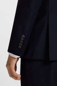 SIZE AND FIT The model wears a size EU:94 and is 6'2" tall with a, 36" chest, 31" waist and 35" hips. DETAILS L-Harvers-241-LC - 50509899 A timeless jacket by BOSS Menswear. Tailored to a defined silhouette, this fully-lined style is crafted in stretch fabric for ease of movement. Slim fit Fully lined QUALITY & CARE INSTRUCTIONS Do Not Wash Quality: 98% Virgin wool, 2% Elastane, pocketing: 100% Cotton, Body Lining: 100% Cupro Iron Medium Heat Do Not Bleach Reduced Dry Clean Do Not Tumble Dry
