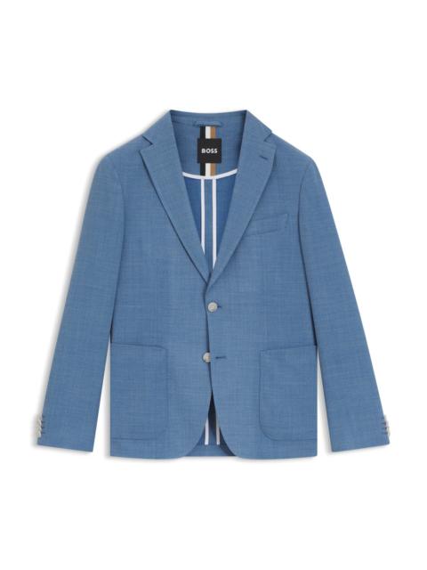 DETAILS C-Hanry-J-Hoodie-253 - 50545835 For versatile styling, this cotton-rich BOSS Menswear jacket is a solid investment. Slim fit with soft shoulder construction and an integrated hoodie. Slim fit Notched lapels Fastening top: Zip and button closure Number of buttons: 2 Welt chest pockets Pockets top: Patch pockets Side vent Partially lined QUALITY & CARE INSTRUCTIONS Reduced Dry Clean Do Not Bleach Do Not Tumble Dry Do Not Wash Iron Low Heat Quality: 82% Cotton, 15% Polyamid, 3% Elastane, Sleeve lining: 100% Viscose, Inner jacket: 57% Cotton, 39% Polyamid, 4% Elastane, Body Lining: 65% Polyester, 35% Cotton