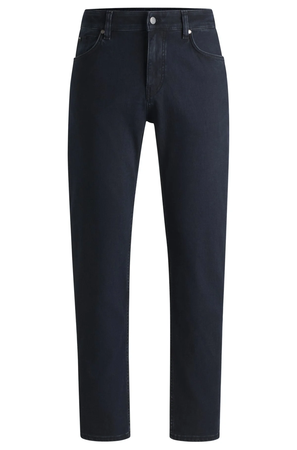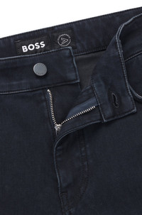 SIZE AND FIT The model wears a size 32/32 and is 6'0" tall with a, 35" chest, 27" waist and 36" hips. DETAILS P-Re.Maine - 50532623 Innovative jeans knitted in stretch denim for an active lifestyle. Cozy yet flexible, these dark-blue jeans by BOSS Menswear come in a straight fit. Regular fit Regular rise Button and zip closure Pockets bottom front: Side pockets Tapered leg Pockets bottom back: Patch pocket Standard length QUALITY & CARE INSTRUCTIONS Machine Wash Cold Gentle Iron Medium Heat Do Not Bleach Do Not Tumble Dry Quality: 98% Cotton, 2% Elastane Do Not Dry Clean
