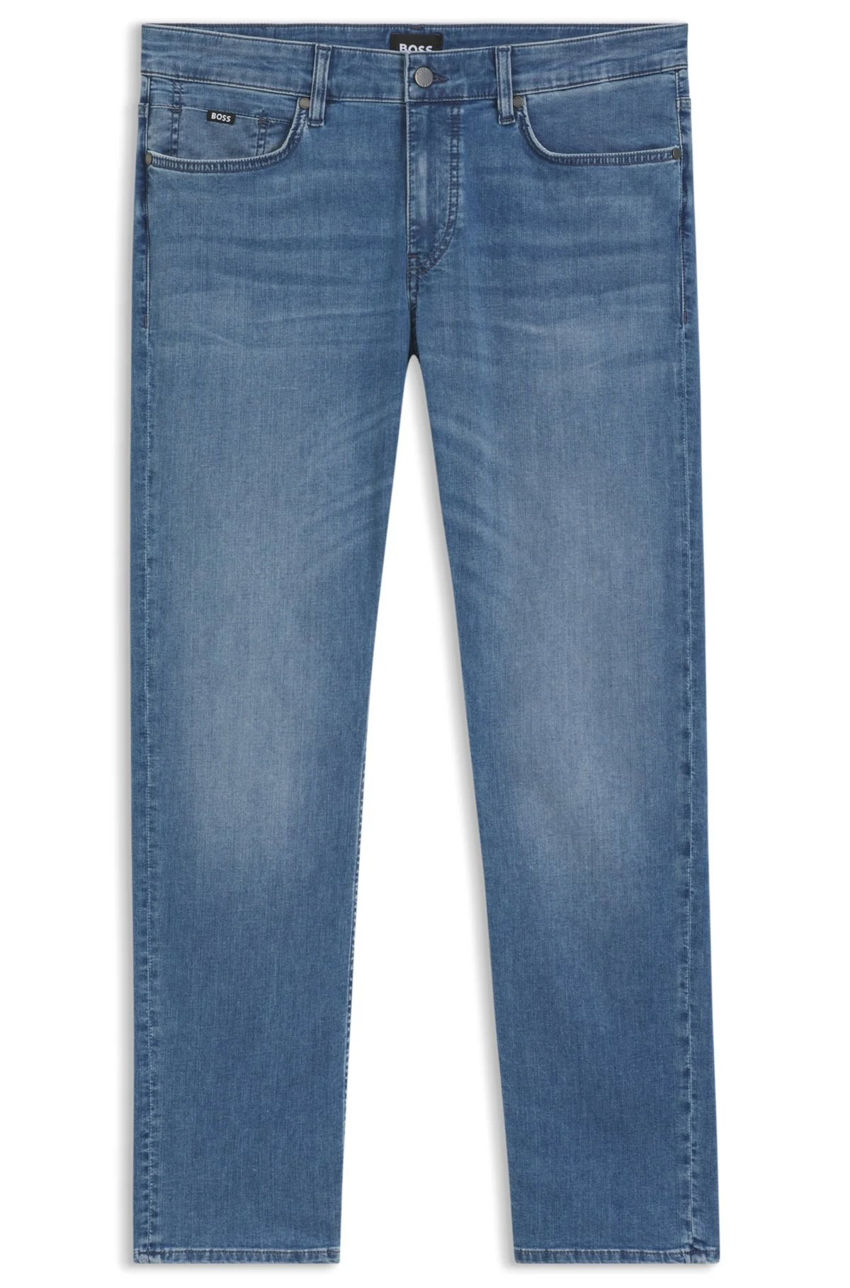 SIZE AND FIT The model wears a size 32/32 and is 6'2" tall with a, 37" chest, 33" waist and 35" hips. DETAILS P-Delaware - 50544918 Ideal for comfort on the move, these BOSS Menswear jeans are crafted in performance denim with a lightweight, cooling feel. Slim fit Authentic blue color. Slim fit Regular rise Button and zip closure Pockets bottom front: Side pockets Slim leg Pockets bottom back: Patch pocket Standard length Fit foot width: 35,4 cm (13.9 inches) QUALITY & CARE INSTRUCTIONS Do Not Tumble Dry Do Not Bleach Iron Medium Heat Quality: 90% Cotton, 8% Polyester, 2% Elastane Do Not Dry Clean Machine Wash Cold Gentle
