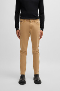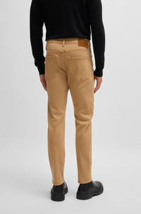 SIZE AND FIT The model wears a size 32/32 and is 6'1" tall with a, 0" chest, 31" waist and 37" hips. DETAILS L-KAROO - 50528004 Casual jeans by BOSS. Cut to a slim fit with a regular rise, this pair is crafted in cozy comfort-stretch denim with signature trims. Slim fit Regular rise Button and zip closure Pockets bottom front: Side pockets Slim leg Pockets bottom back: Patch pocket Standard length Fit foot width: 36,0 cm (14.2 inches) QUALITY & CARE INSTRUCTIONS Iron Medium Heat Quality: 94% Cotton, 4% Polyester, 2% Elastane Do Not Tumble Dry Do Not Bleach Machine Wash Cold Gentle Do Not Dry Clean