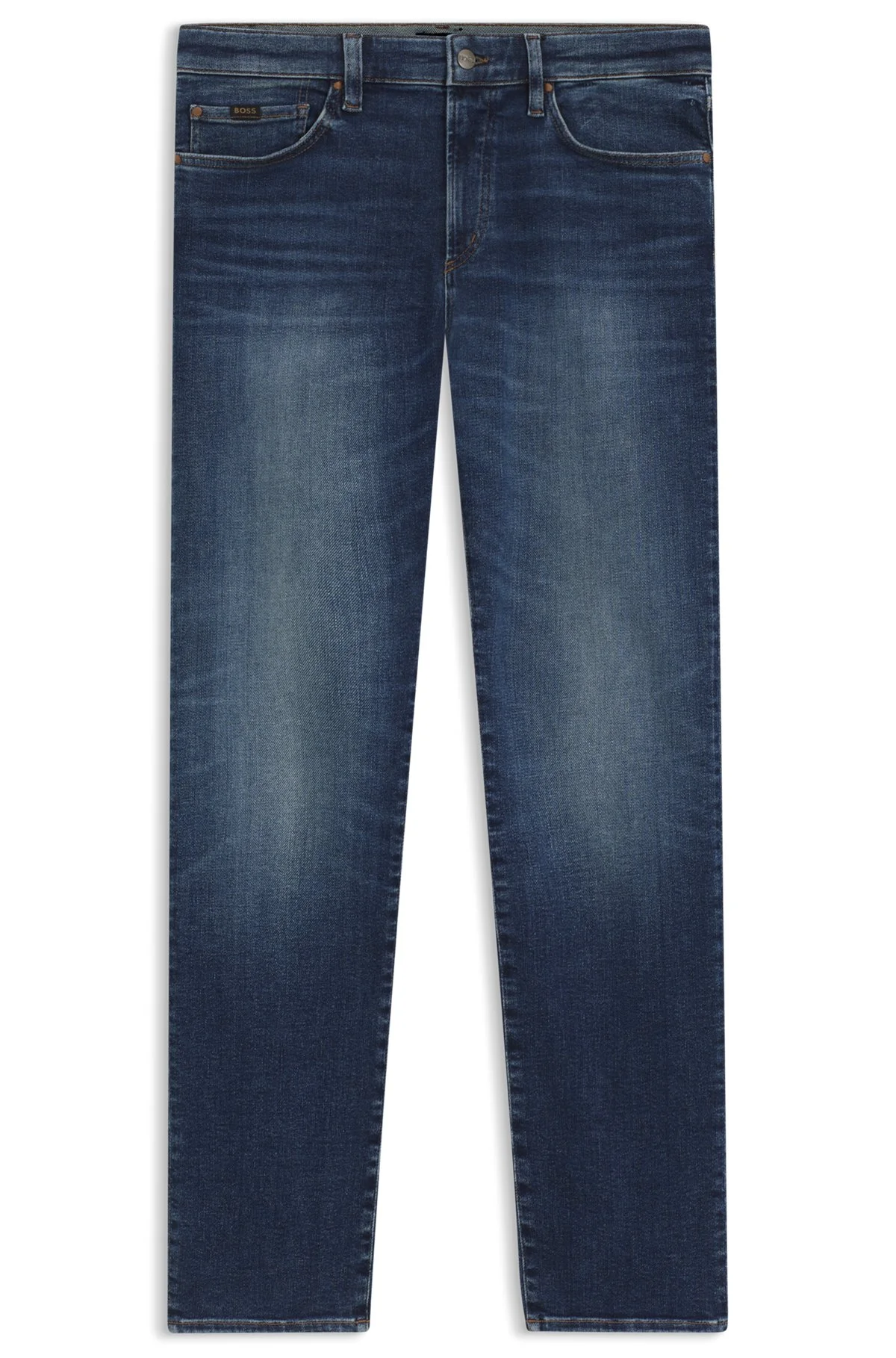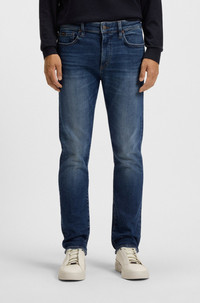 SIZE AND FIT The model wears a size 32/32 and is 6'1" tall with a, 36" chest, 29" waist and 36" hips. DETAILS Washed to an authentic blue, these BOSS Menswear jeans are cut in luxury performance-stretch denim for outstanding shape retention and comfort. Clean slim fit. Slim fit Regular rise Button and zip closure Pockets bottom front: Side pockets Slim leg Pockets bottom back: Patch pocket Standard length Fit foot width: 36,0 cm (14.2 inches) L-KAROO - 50548043 QUALITY & CARE INSTRUCTIONS Iron Medium Heat Do Not Tumble Dry Material: 94% Cotton, 4% Elastomultiester, 2% Elastane Do Not Bleach Do Not Dry Clean Machine Wash Cold Gentle