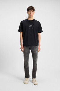 SIZE AND FIT The model wears a size 32/32 and is 6'2" tall with a, 37" chest, 30" waist and 37" hips. DETAILS DELAWARE BO - 50544635 In soft cross-hedge denim blended with stretch, these gray BOSS Menswear jeans make a versatile choice. Cut to a defined fit. Lasered used effects. Slim fit Regular rise Button and zip closure Pockets bottom front: Side pockets Slim leg Pockets bottom back: Patch pocket Standard length Fit foot width: 36,0 cm (14.2 inches) QUALITY & CARE INSTRUCTIONS Iron Medium Heat Do Not Bleach Do Not Dry Clean Machine Wash Cold Gentle Do Not Tumble Dry Quality: 98% Cotton, 2% Elastane