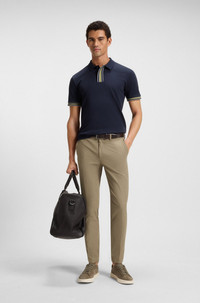 DETAILS P-Kaiton1-Zip - 50543945 Upgrade your off-duty foundations with the stretch twill of these BOSS Menswear trousers. Cut to a slim fit with a regular rise. Slim fit Regular rise Button and zip closure Pockets bottom front: Zip pockets Pockets bottom back: Welt pocket QUALITY & CARE INSTRUCTIONS Do Not Tumble Dry Machine Wash Cold Gentle Quality: 60% Cotton, 33% Polyamide, 7% Elastane Reduced Dry Clean Iron Low Heat Do Not Bleach
