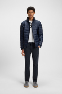 SIZE AND FIT The model wears a size 32/32 and is 6'1" tall with a, 32" chest, 25" waist and 35" hips. DETAILS Chino_slim - 50548006 Super effortless to style, these BOSS Menswear trousers have a subtle dobby structure with a two-tone effect. Defined fit. Flexible stretch cotton. Slim fit Regular rise Slim leg QUALITY & CARE INSTRUCTIONS Reduced Dry Clean Quality: 98% Cotton, 2% Elastane, pocketing: 65% Polyester, 35% Cotton Machine Wash Cold Gentle Do Not Tumble Dry Do Not Bleach Iron Low Heat