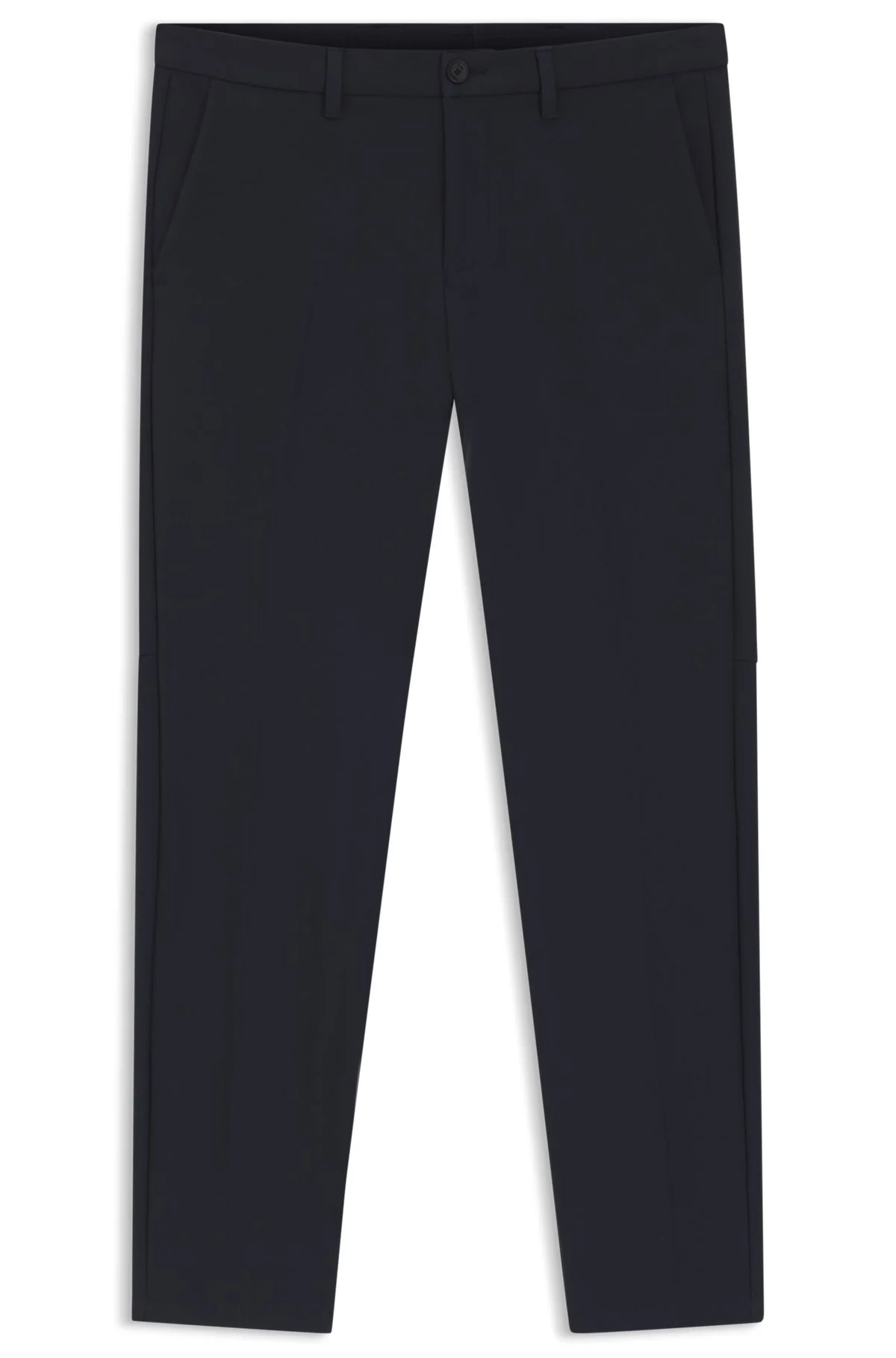 SIZE AND FIT The model wears a size 34R and is 6'2" tall with a, 36" chest, 31" waist and 38" hips. DETAILS Quick drying and easy to iron, these slim-fit BOSS Menswear trousers are essential for active lifestyles. Hidden drawcord. Integrated card holder and coin pocket. T_Commuter-SlimTekCo - 50544245 QUALITY & CARE INSTRUCTIONS Do Not Tumble Dry Iron Low Heat Machine Wash Cold Gentle Do Not Bleach Reduced Dry Clean Quality: 100% Polyester, pocketing: 100% Polyester