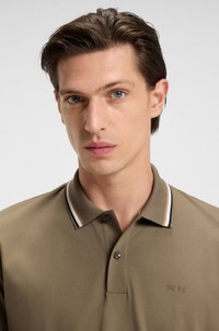 DETAILS A luxurious polo shirt cut to a defined fit, by BOSS Menswear. Featuring signature stripes at the collar, this short-sleeved polo shirt is crafted in mercerized cotton for a super-soft feel and is printed with a tonal BOSS logo at the left chest. The side seam carries a branded flag for a distinctive finish. Slim fit Neckline: Flat-knit collar Number of buttons: 2 Short sleeves No cuffs Standard length Penrose 38 - 50469360 QUALITY & CARE INSTRUCTIONS Do Not Tumble Dry Iron Low Heat Do Not Dry Clean Machine Wash Cold Gentle Do Not Bleach Quality: 100% Cotton