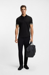DETAILS With pique-knit stripes and a sleeve logo, this BOSS Menswear polo shirt is a modern classic. Slim fit Interlock cotton with a soft finish. Slim fit Neckline: Flat-knit collar Number of buttons: 2 Short sleeves Flat-knit cuffs Standard length Polo Zone - 50544448 QUALITY & CARE INSTRUCTIONS Cold, gentle machine wash; reduced spin speed. Do Not Dry Clean Do Not Bleach Iron Low Heat Material: 100% Cotton Do Not Tumble Dry