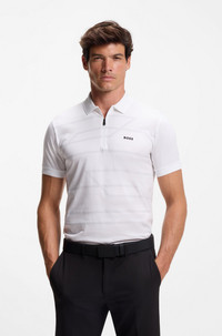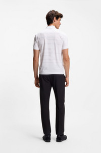 DETAILS Philix - 50549356 With a dynamic melange print, this BOSS Menswear polo shirt is a strong choice for active days. Quick-dry cotton jersey. Zipped placket. Slim fit Slim fit Neckline: Flat-knit collar Short sleeves Flat-knit cuffs Standard length QUALITY & CARE INSTRUCTIONS Do Not Tumble Dry Machine Wash Cold Gentle Quality: 100% Cotton Iron Low Heat Do Not Bleach Do Not Dry Clean