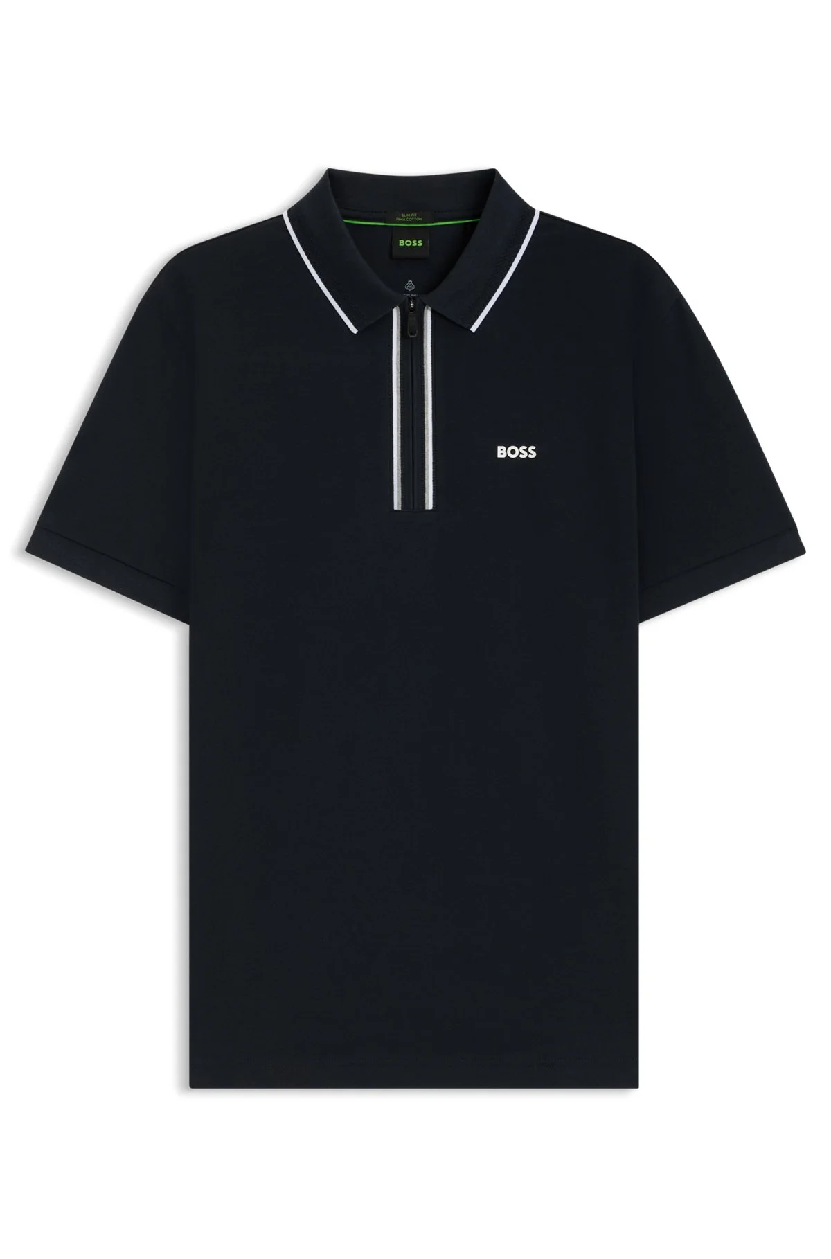 DETAILS Philix GOC - 50544450 Made in cotton with four-way stretch for active comfort, this slim-fitting BOSS Menswear polo shirt offers moisture management. Stripe details and zip placket. Slim fit Neckline: Flat-knit collar Short sleeves Flat-knit cuffs Standard length QUALITY & CARE INSTRUCTIONS Do Not Tumble Dry Do Not Dry Clean Do Not Bleach Machine Wash Cold Gentle Quality: 92% Cotton, 8% Elastane Iron Low Heat