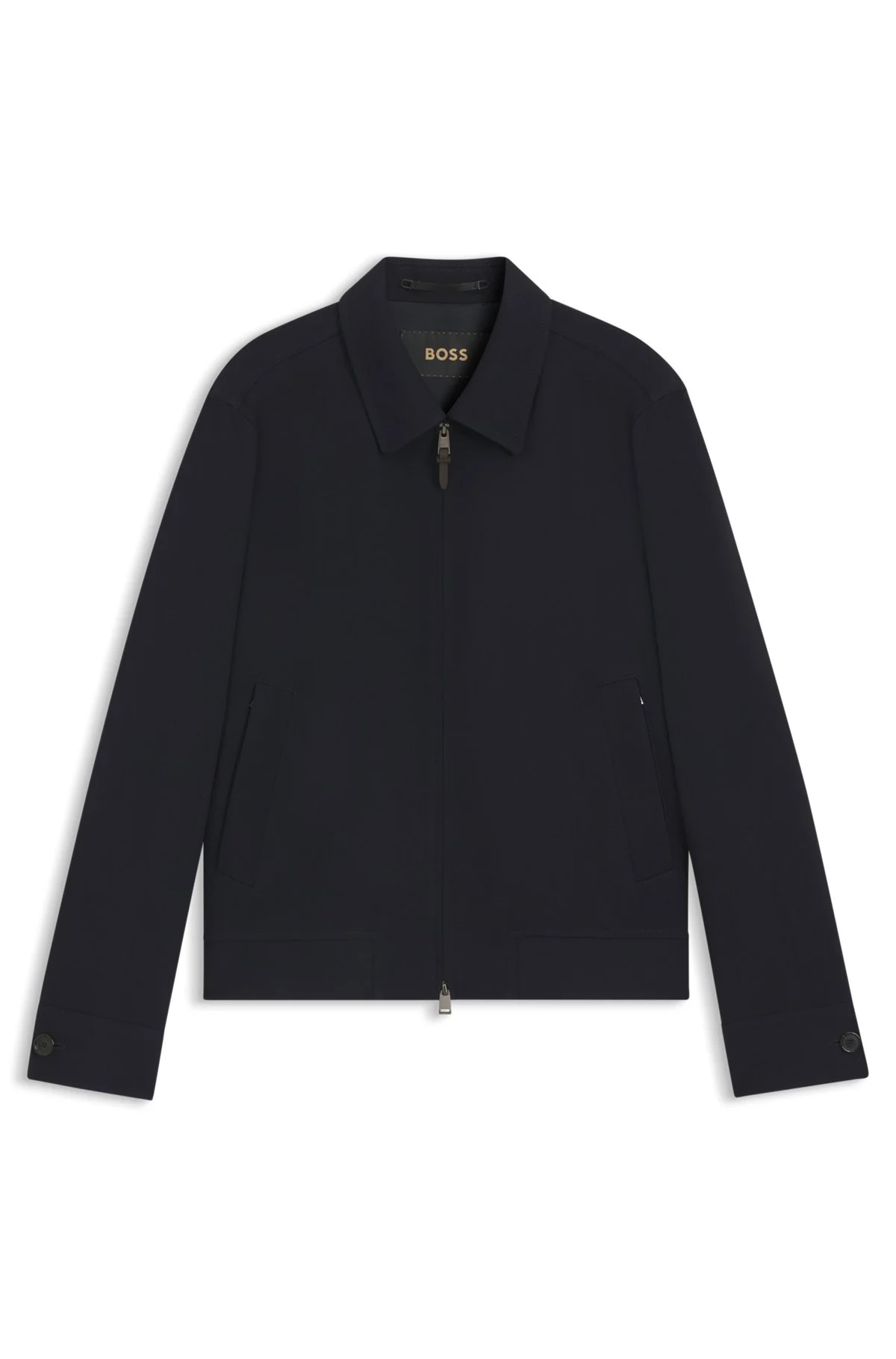SIZE AND FIT The model wears a size 38R and is 6'1" tall with a, 33" chest, 24" waist and 36" hips. DETAILS L-Heston-Wing-LP-233 - 50545397 A clean-cut essential for business travel, this BOSS Menswear jacket is made in water-repellent virgin wool. Two-way front zip. Slim fit Slim fit Fully lined Fit back length: 66 cm (26 inches) QUALITY & CARE INSTRUCTIONS Do Not Tumble Dry Quality: 100% Virgin wool, Sleeve lining: 100% Cupro, Body Lining: 100% Cupro Iron Medium Heat Do Not Wash Reduced Dry Clean Do Not Bleach