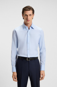 DETAILS L-HAYS-KENT-C1-243 - 50544772 With its clean slim fit and performance stretch, this BOSS Menswear shirt is a fine choice for business travel. Finest Italian-made cotton. Slim fit Kentkragen Angled cuffs QUALITY & CARE INSTRUCTIONS Do Not Bleach Do Not Tumble Dry Quality: 76% Cotton, 21% Polyamid, 3% Elastane Dry Clean Only Iron Medium Heat Machine Wash Warm