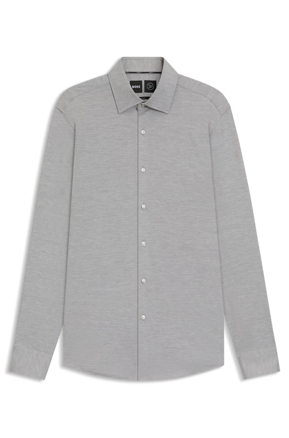 SIZE AND FIT The model wears a size EU:40 and is 6'0" tall with a, 37" chest, 29" waist and 36" hips. DETAILS In stretch flannel with a cozy brushed finish, this BOSS Menswear shirt is ideal for cooler days in the office. Cut to a slim fit. Slim fit Kentkragen Round cuffs P-HANK-kent-C1-222 - 50550563 QUALITY & CARE INSTRUCTIONS Machine Wash Cold Gentle Dry Clean Only Do Not Bleach Material: 48% Polyester, 40% Polyamid, 12% Elastane Iron Low Heat Do Not Tumble Dry