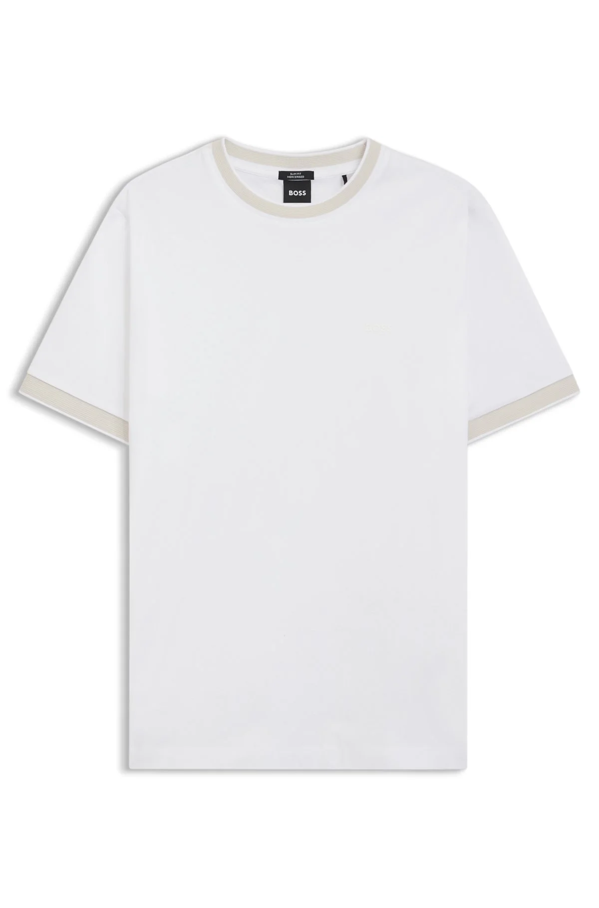 SIZE AND FIT The model wears a size L and is 6'1" tall with a, 36" chest, 29" waist and 37" hips. DETAILS H-Tessler 200 - 50543858 With a logo detail and contrast trims, this slim BOSS Menswear T-shirt adds interest to casual looks. Mercerized cotton with an extra-soft touch. Slim fit Neckline: Crew neck Short sleeves Side slit QUALITY & CARE INSTRUCTIONS Do Not Tumble Dry Quality: 100% Cotton Do Not Bleach Machine Wash Cold Gentle Reduced Dry Clean Iron Low Heat