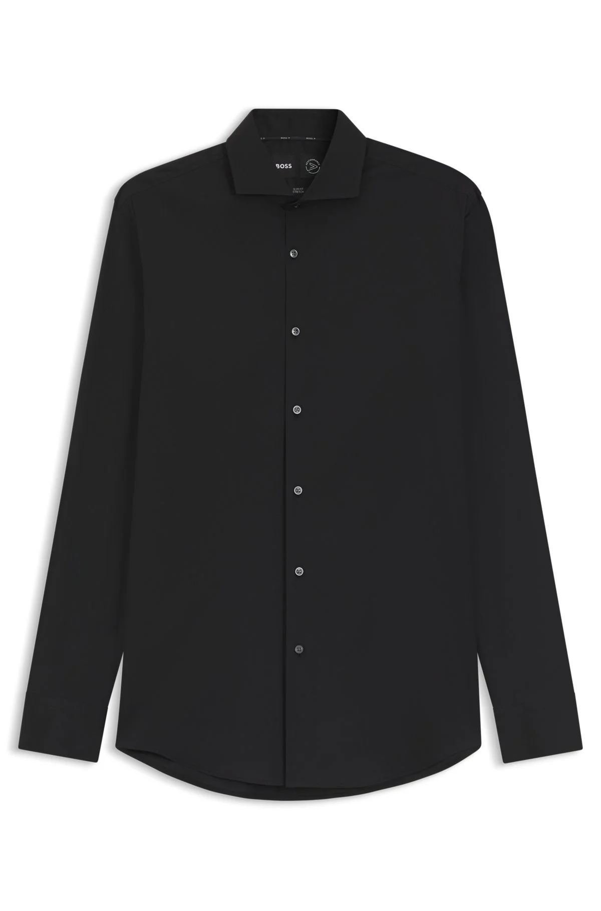 SIZE AND FIT The model wears a size 15.5 and is 6'1" tall with a, 33" chest, 31" waist and 33" hips. DETAILS P-HANK-spread-C1-222 - 50479915 A long-sleeved shirt by BOSS Menswear. Cut to a defined fit for a clean profile, this shirt is crafted in cotton-rich poplin blended with stretch and treated with an easy-iron finish. Slim fit Spread collar Round cuffs QUALITY & CARE INSTRUCTIONS Dry Clean Only Do Not Tumble Dry Do Not Bleach Machine Wash Cold Gentle Quality: 75% Cotton, 20% Polyamid, 5% Elastane Iron Low Heat