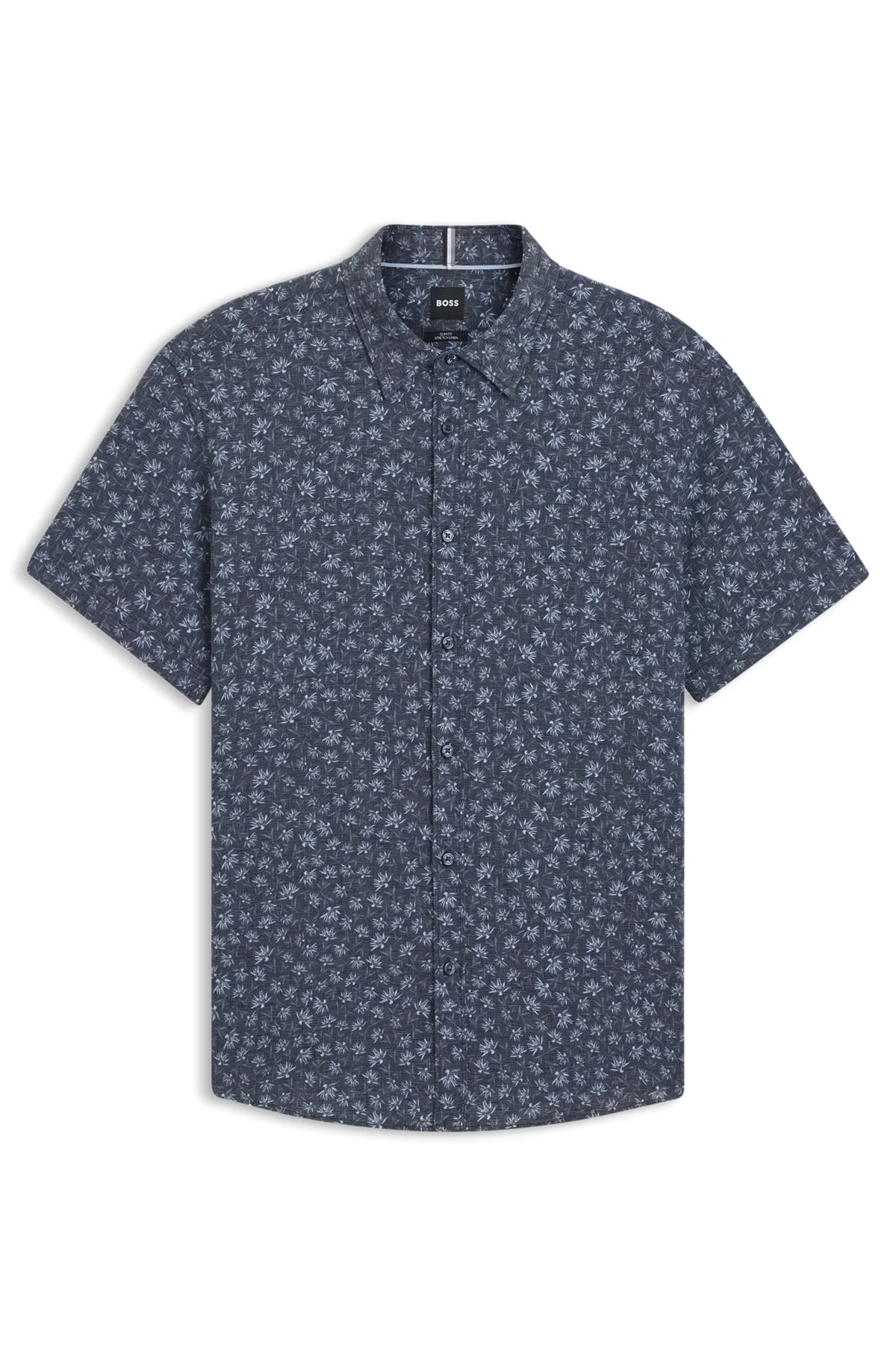 SIZE AND FIT The model wears a size M and is 6'2" tall with a, 34" chest, 26" waist and 35" hips. DETAILS C-ROAN-ken-SH-C1-251 - 50539565 A refined summery option, this BOSS Menswear shirt is crafted in cooling linen with stretch for comfort. Printed with a contemporary floral motif. Slim fit. Slim fit Kent collar Round cuffs QUALITY & CARE INSTRUCTIONS Iron Low Heat Do Not Tumble Dry Machine Wash Cold Do Not Bleach Quality: 85% Linen, 15% Elastomultiester Dry Clean Only
