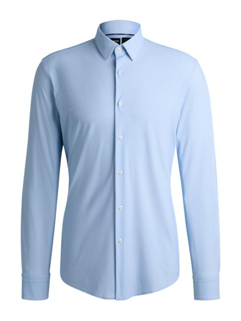 SLIM-FIT SHIRT IN GEOMETRIC-PRINT PERFORMANCE-STRETCH JERSEY