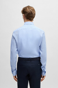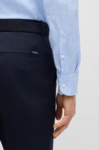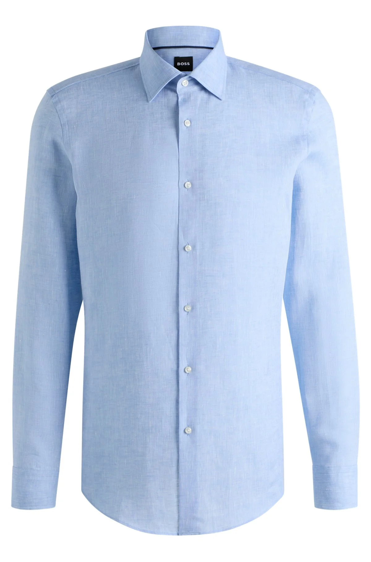 SIZE AND FIT The model wears a size 15.5 and is 6'0" tall with a, 36" chest, 29" waist and 37" hips. DETAILS H-HANK-kent-C1-214 - 50490234 This BOSS Menswear shirt is crafted in Italian-made linen for effortless summertime elegance. Cooling breathability and a clean slim fit. Slim fit Kent collar Round cuffs QUALITY & CARE INSTRUCTIONS Do Not Tumble Dry Quality: 100% Linen Machine Wash Warm Gentle Iron Low Heat Do Not Bleach Do Not Dry Clean