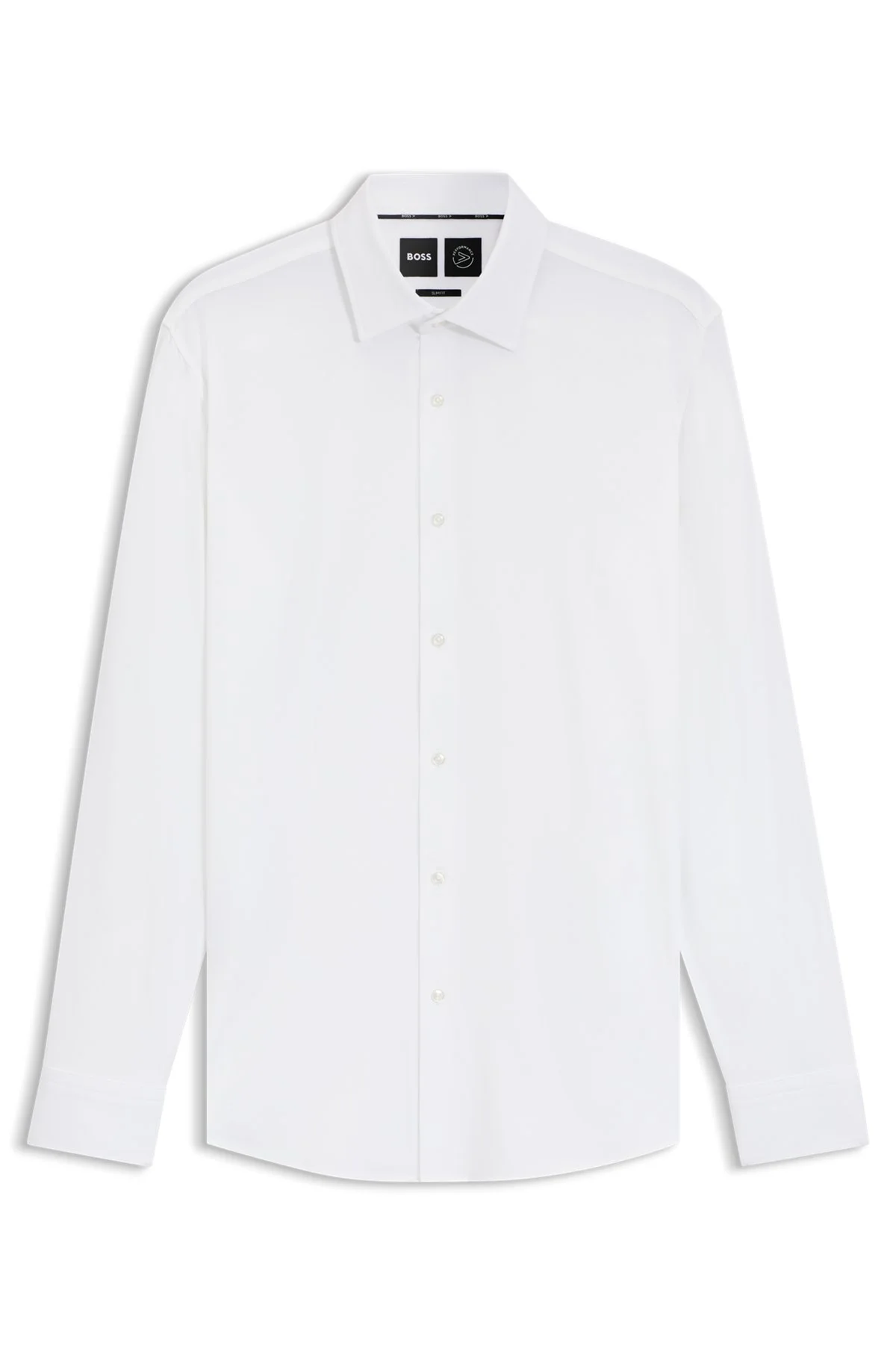 SIZE AND FIT The model wears a size 15.5 and is 6'2" tall with a, 36" chest, 31" waist and 35" hips. DETAILS P-HANK-kent-C1-222 - 50533395 An advanced business shirt with moisture management by BOSS Menswear. This piece is cut to a defined fit in structured Italian-made performance-stretch fabric. Slim fit Kentkragen Round cuffs QUALITY & CARE INSTRUCTIONS Do Not Bleach Do Not Tumble Dry Dry Clean Only Quality: 87% Polyamide, 13% Elastane Iron Low Heat Machine Wash Cold Gentle