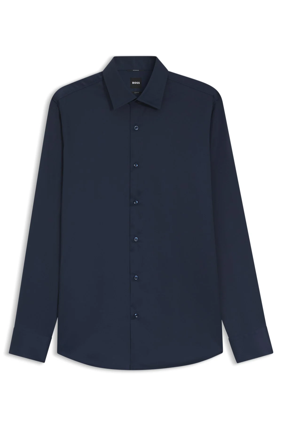 DETAILS Invest in advanced comfort for work and formal events with this BOSS Menswear shirt. Tailored to a defined fit in super-flex twill. Slim fit Kentkragen Round cuffs P-HANK-kent-C1-222 - 50538783 QUALITY & CARE INSTRUCTIONS Machine Wash Warm Material: 93% Polyamid, 7% Elastane Do Not Bleach Dry Clean Only Do Not Tumble Dry Iron Medium Heat