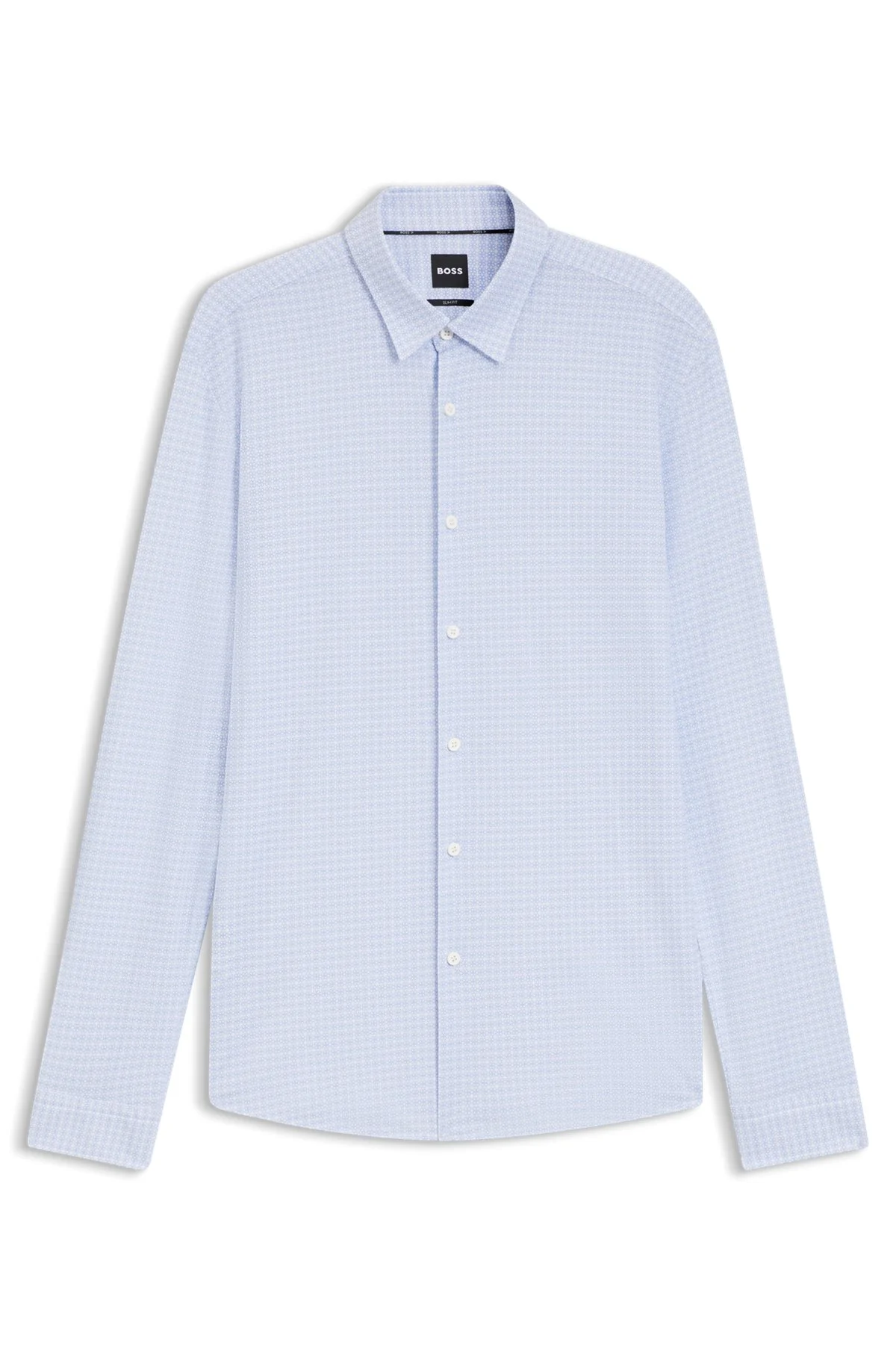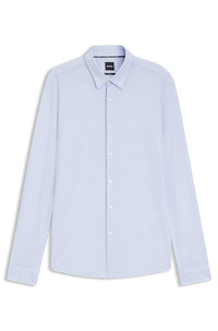 DETAILS P-ROAN-kent-C1-233 - 50550652 Printed with a modern motif, this BOSS Menswear shirt is cut in flex-weave fabric with cotton for comfort and easy movement. Slim fit Slim fit Kentkragen Round cuffs Standard length QUALITY & CARE INSTRUCTIONS Do Not Tumble Dry Machine Wash Cold Gentle Quality: 50% Polyester, 45% Cotton, 5% Elastane Iron Low Heat Do Not Bleach Dry Clean Only