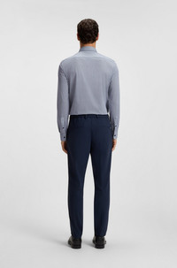 DETAILS Offering stretch comfort and moisture management, this BOSS Menswear shirt has a contemporary print. Italian fabric. Cut to a clean slim fit. Slim fit Kentkragen Round cuffs Standard length P-ROAN-kent-C1-233 - 50550734 QUALITY & CARE INSTRUCTIONS Dry Clean Only Do Not Tumble Dry Iron Low Heat Do Not Bleach Material: 87% Polyamide, 13% Elastane Machine Wash Cold Gentle