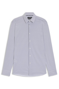 SIZE AND FIT The model wears a size EU:40 and is 6'2" tall with a, 37" chest, 30" waist and 37" hips. DETAILS P-HANK-s-kent-C1-222 - 50539392 Stay comfortable on long days with the advanced flexibility of this BOSS Menswear shirt. Printed with a modern motif and tailored to a defined fit. Slim fit Kent collar Round cuffs QUALITY & CARE INSTRUCTIONS Do Not Bleach Do Not Tumble Dry Dry Clean Only Iron Low Heat Quality: 76% Polyamid, 24% Elastane Machine Wash Cold Gentle