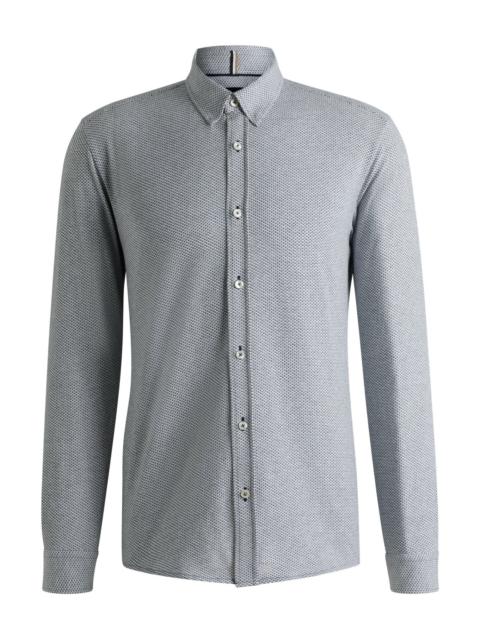 DETAILS L-HAYS-HBD-C1-251 - 50539574 In Italian-made fabric with silk, this BOSS Menswear shirt is an elevated choice. Defined fit complemented by a stripe and mother-of-pearl buttons. Slim fit Kent collar Angled cuffs QUALITY & CARE INSTRUCTIONS Iron Medium Heat Dry Clean Only Do Not Tumble Dry Machine Wash Cold Gentle Quality: 60% Cotton, 25% Linen, 15% Silk Do Not Bleach