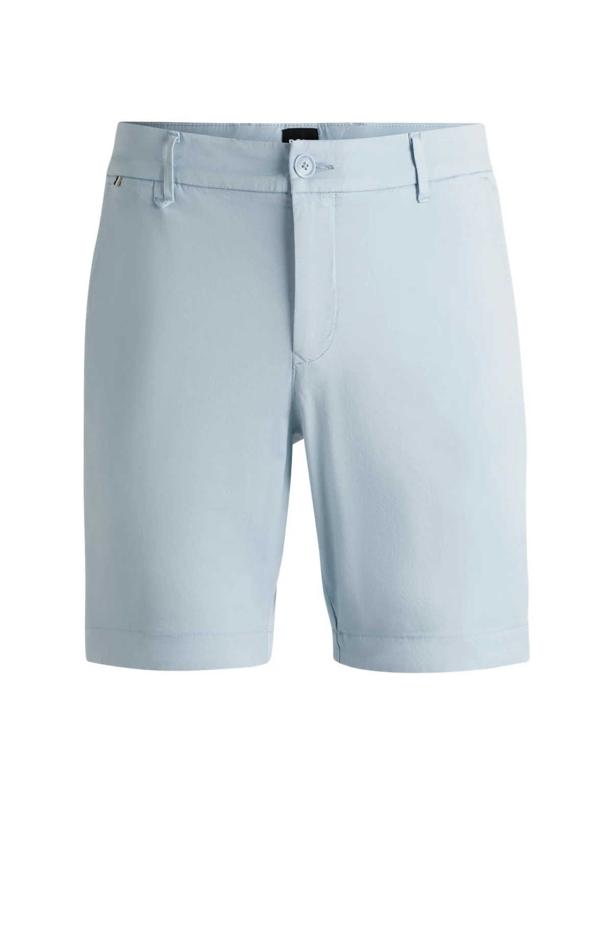 SIZE AND FIT The model wears a size 32R and is 6'2" tall with a, 36" chest, 28" waist and 37" hips. DETAILS H-Slice-Shorts-L - 50530857 Versatile shorts by BOSS. This regular-rise pair is cut to a slim fit in soft twill blended with stretch for comfort. Slim fit Regular rise Button and zip closure Pockets bottom front: French pocket Pockets bottom back: Jetted pockets Standard length QUALITY & CARE INSTRUCTIONS Quality: 98% Cotton, 2% Elastane Reduced Dry Clean Do Not Bleach Do Not Tumble Dry Iron Low Heat Machine Wash Cold Gentle
