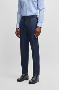 SIZE AND FIT The model wears a size 40R and is 6'1" tall with a, 36" chest, 29" waist and 37" hips. DETAILS H-Huge-2Pcs-224 - 50535401 An elegant suit with a checked pattern by BOSS Menswear. Featuring constructed shoulders in the jacket, this two-piece suit is crafted in wool blended with silk for a refined look and feel. The slim fit delivers clean and contemporary lines. Slim fit Notched lapels Number of buttons: 2 Welt chest pockets Pockets top: Flap pockets Button cuffs Side vent Fully lined Standard length Fit back length: 73 cm (29 inches) Pockets bottom front: French pocket Pockets bottom back: Welt pocket Fit foot width: 36,0 cm (14.2 inches) Packaging: Dust bag QUALITY & CARE INSTRUCTIONS Reduced Dry Clean Do Not Bleach Quality: 80% Virgin wool, 20% Silk, Lining: 65% Viscose, 35% Polyester, Sleeve lining: 100% Viscose, knee lining: 100% Viscose Do Not Tumble Dry Do Not Wash Iron Low Heat