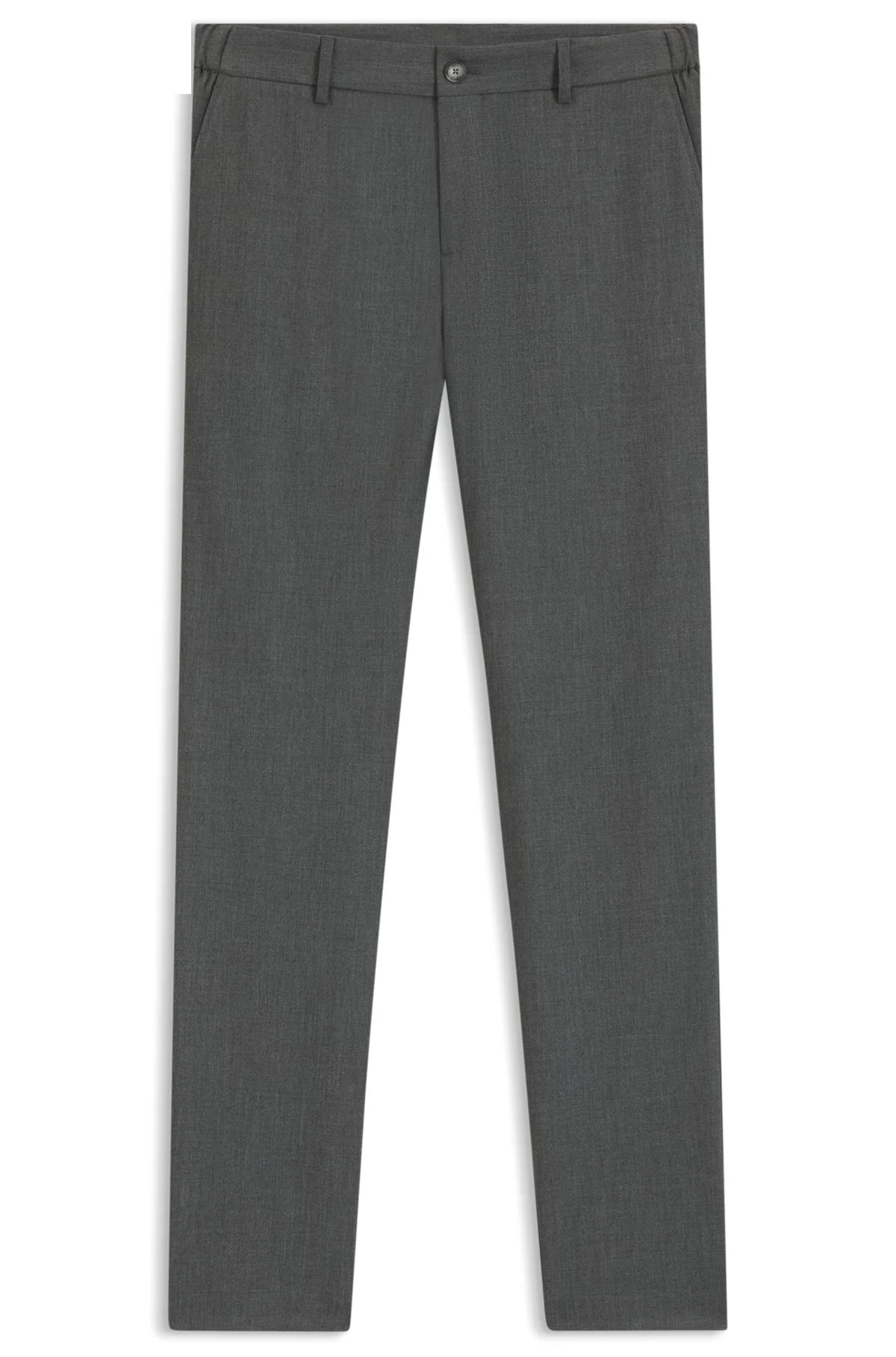 DETAILS P-Genius-EL-WG-252F - 50539968 Create effortless formal looks with these machine-washable BOSS Menswear trousers. Tailored to a slim fit in micro-patterned fabric with extra stretch for comfort. Slim fit Button and zip closure Pockets bottom front: Side slash pockets Pockets bottom back: Welt pocket Partially lined QUALITY & CARE INSTRUCTIONS Do Not Dry Clean Machine Wash Cold Gentle Do Not Tumble Dry Quality: 67% Polyester, 29% Viscose, 4% Elastane, pocketing: 65% Polyester, 35% Cotton, mesh lining: 58% Polyamid, 42% Polyester Do Not Iron Do Not Bleach