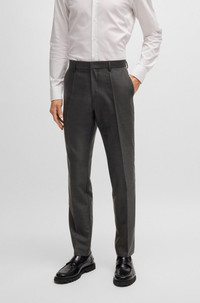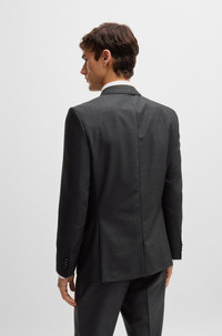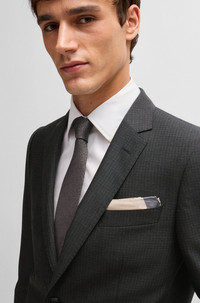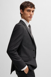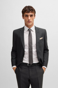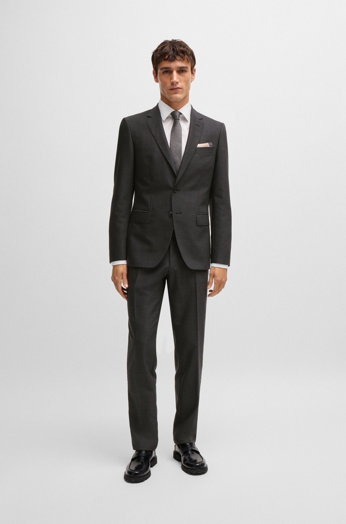 SIZE AND FIT The model wears a size 38R and is 6'1" tall with a, 37" chest, 29" waist and 35" hips. DETAILS H-Huge-2Pcs-224 - 50528117 A two-piece suit with signature lining by BOSS. Woven with a micro pattern for adaptable styling, this distinctive suit is crafted in wool for a rich look and feel. This ensemble is impeccably tailored to a slim fit. Slim fit Notched lapels Number of buttons: 2 Welt chest pockets Pockets top: Flap pockets Button cuffs Side vent Fully lined Standard length Fit back length: 73 cm (29 inches) Pockets bottom front: French pocket Pockets bottom back: Welt pocket Fit foot width: 36,0 cm (14.2 inches) Packaging: Dust bag QUALITY & CARE INSTRUCTIONS Iron Low Heat Do Not Wash Quality: 100% Virgin wool, Lining: 65% Viscose, 35% Polyester, Sleeve lining: 100% Viscose, knee lining: 100% Viscose Reduced Dry Clean Do Not Bleach Do Not Tumble Dry