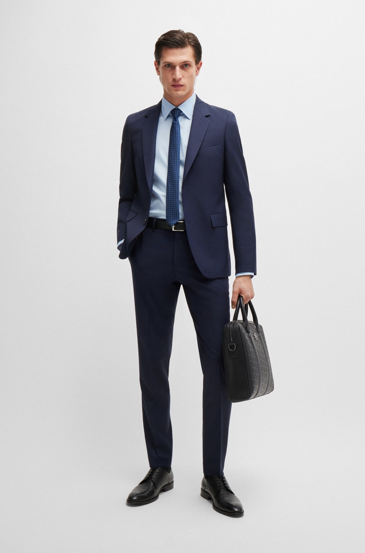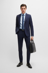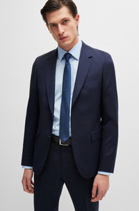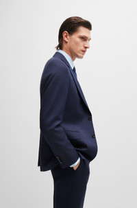 SIZE AND FIT The model wears a size 38R and is 6'2" tall with a, 35" chest, 29" waist and 35" hips. DETAILS H-Houston-2Pcs-243 - 50518120 A timeless suit by BOSS Menswear. Add a BOSS shirt or knitwear for an elegant business look. Slim fit Notched lapels Fastening top: Button closure Number of buttons: 2 Kissing buttons on the cuff Fully lined QUALITY & CARE INSTRUCTIONS Iron Medium Heat Quality: 100% Virgin wool, Lining: 100% Viscose, Sleeve lining: 100% Viscose, knee lining: 100% Viscose Do Not Bleach Do Not Tumble Dry Do Not Wash Reduced Dry Clean
