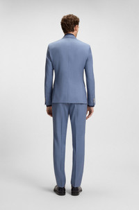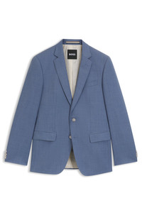 DETAILS H-Huge-B1 - 50469171 This BOSS Menswear suit jacket brings timeless elegance. Crafted in virgin wool with a serge weave. Constructed shoulders. Slim fit with natural stretch for ease. Slim fit Notched lapels Number of buttons: 2 Welt chest pockets Pockets top: Flap pockets Inside welt pockets Kissing buttons on the cuff Side vent Fully lined QUALITY & CARE INSTRUCTIONS Reduced Dry Clean Do Not Tumble Dry Do Not Bleach Iron Low Heat Quality: 100% Virgin wool, Lining: 65% Viscose, 35% Polyester, Sleeve lining: 100% Viscose, pocketing: 100% Cotton Do Not Wash