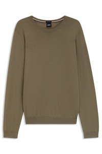 SIZE AND FIT The model wears a size M and is 6'1" tall with a, 36" chest, 29" waist and 36" hips. DETAILS A soft and breathable sweater by BOSS Menswear. Cut to a slim fit, this crew-neck layer is crafted in merino wool. Neckline: Crew neck Long sleeves Standard length Leno-P - 50468239 QUALITY & CARE INSTRUCTIONS Quality: 100% Virgin wool Dry Clean Only Do Not Tumble Dry Iron Medium Heat Cold, gentle machine wash; reduced spin speed. Do Not Bleach
